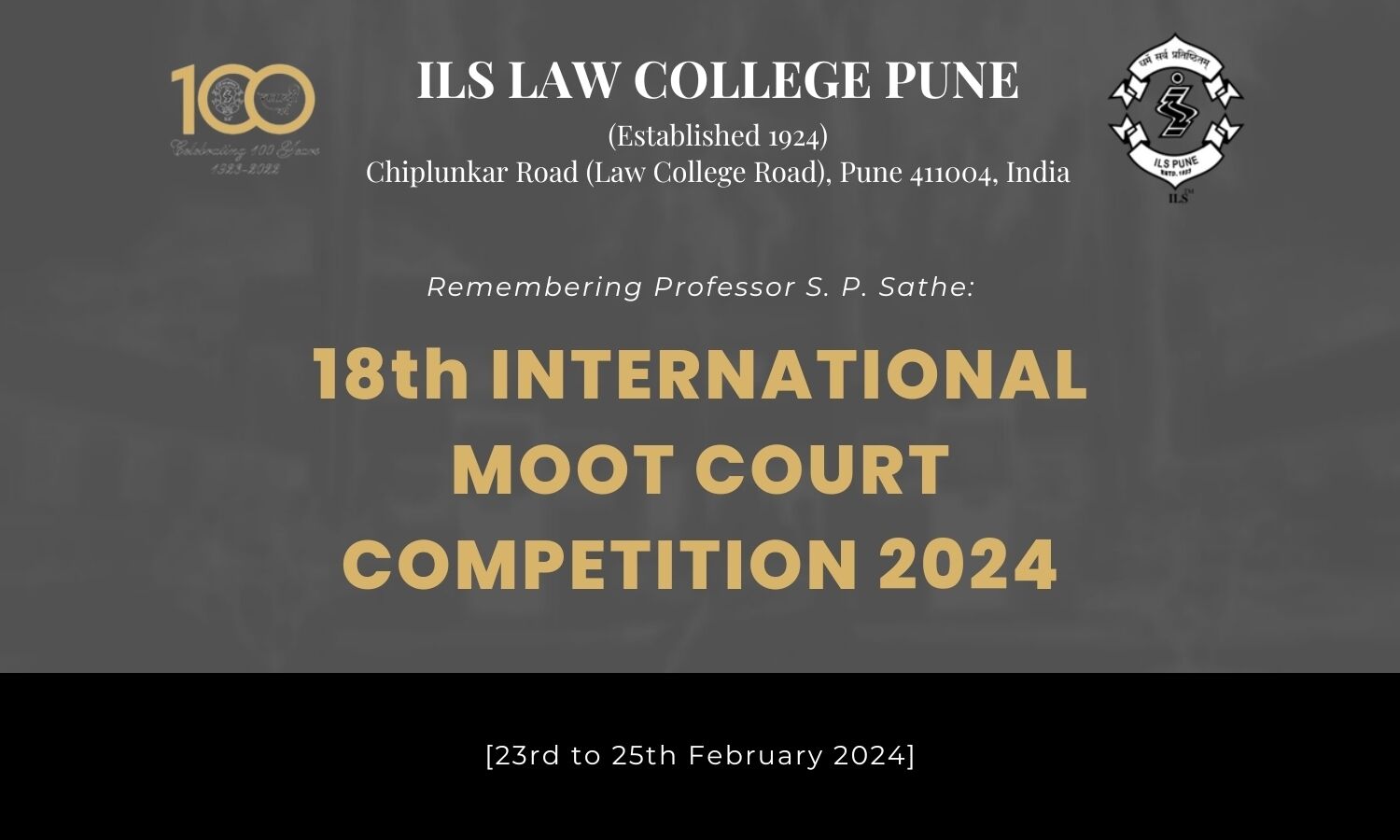 ILS Law College Pune is organising the 18th Remembering Professor S. P. Sathe: International Moot Court Competition 2024 scheduled to be conducted from February 23 to February 25, 2024.