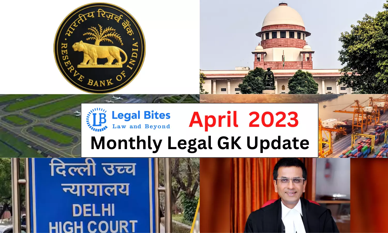Here are Legal Bites April 2023 monthly GK updates. The notable happenings of the month were decisions related to the Supreme Court, World Bank, RBI, Delhi High Court, Adani Port, Sabarimala Greenfield Airport project and so on. We have covered all the happenings in the gist so that it helps the readers to remember all legal and current updates about April 2023 most efficiently and easily.